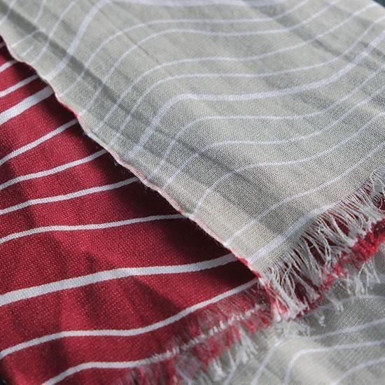 シャトル織機でゆっくりと丁寧に織り上げたこのストールは軽くとても柔らかい仕上がりになっています。